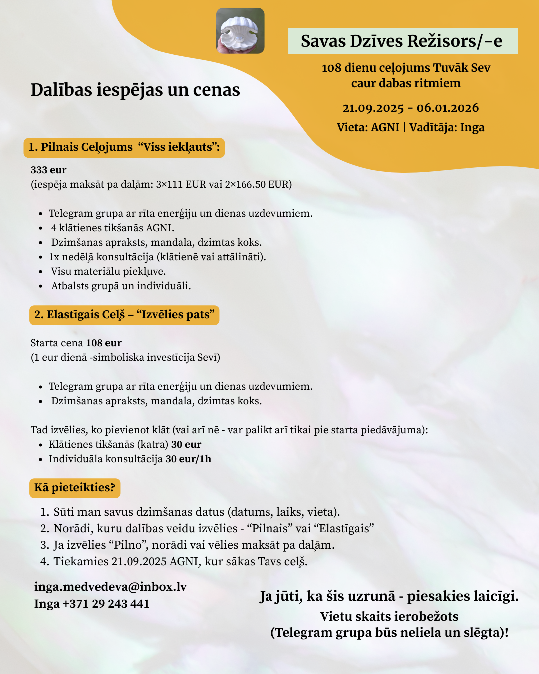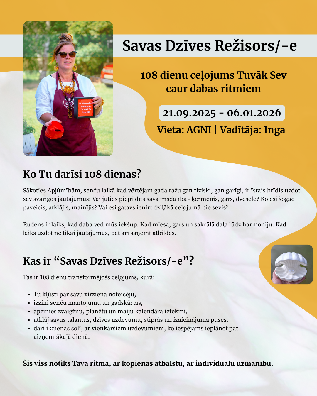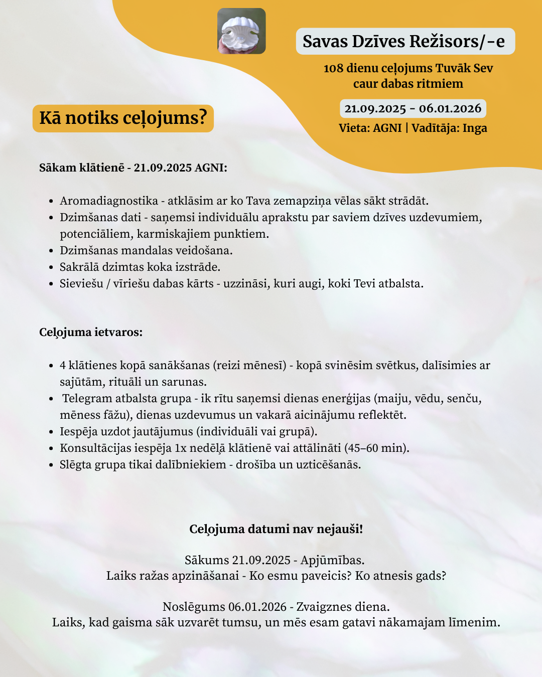 108 dienu ceļojums Tuvāk Sev caur dabas ritmiem.
